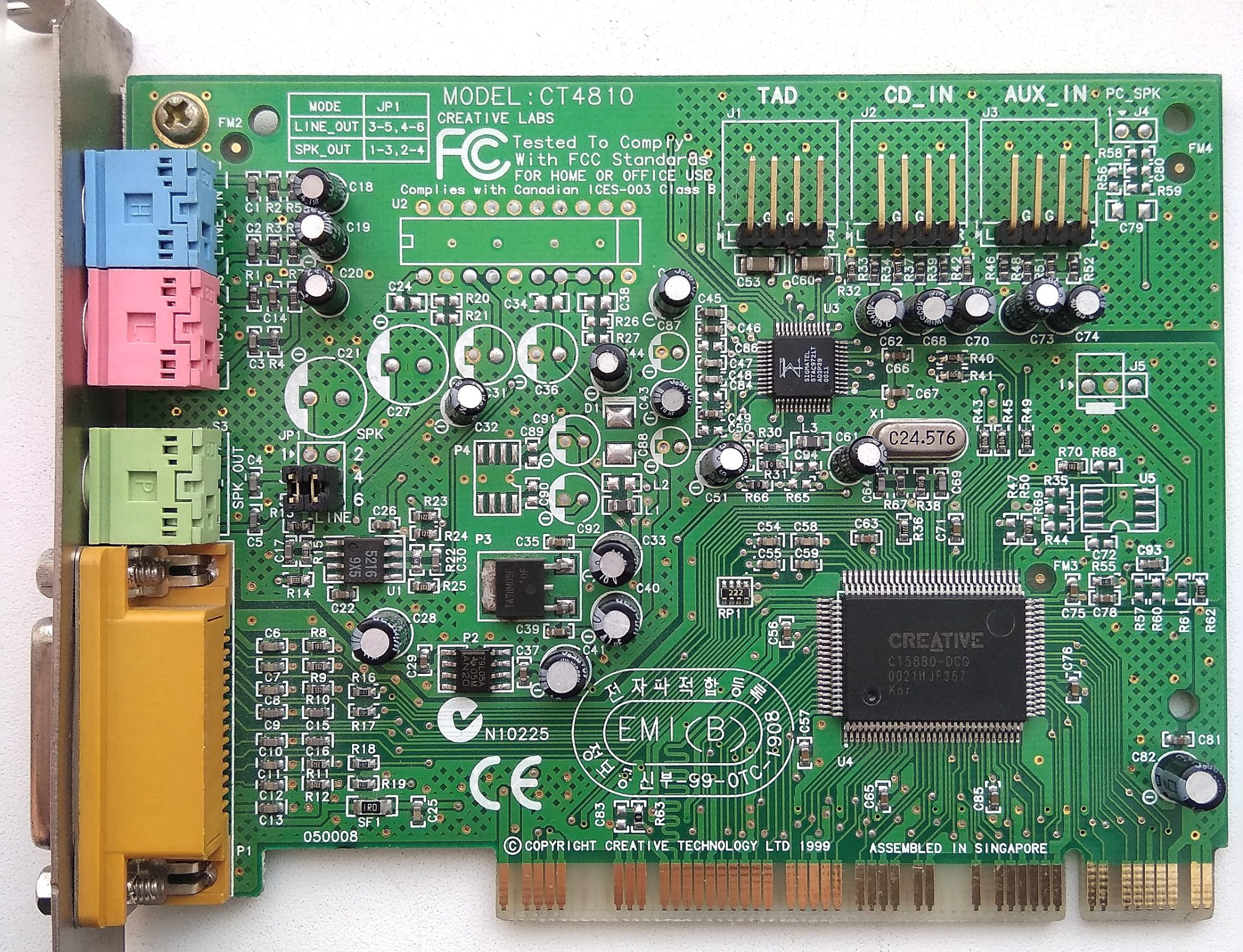 Карта расширения для шины ISA (поддерживается PnP). Изготовлена в Сингапуре в 1997 г.