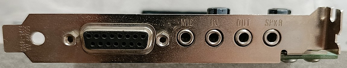 Внутренний соединитель J5 — аудиовход от CD-ROM. Внешние — привычный набор — MIDI/Game (DB-15F), микрофон, линейный вход, линейный и усиленный выходы.