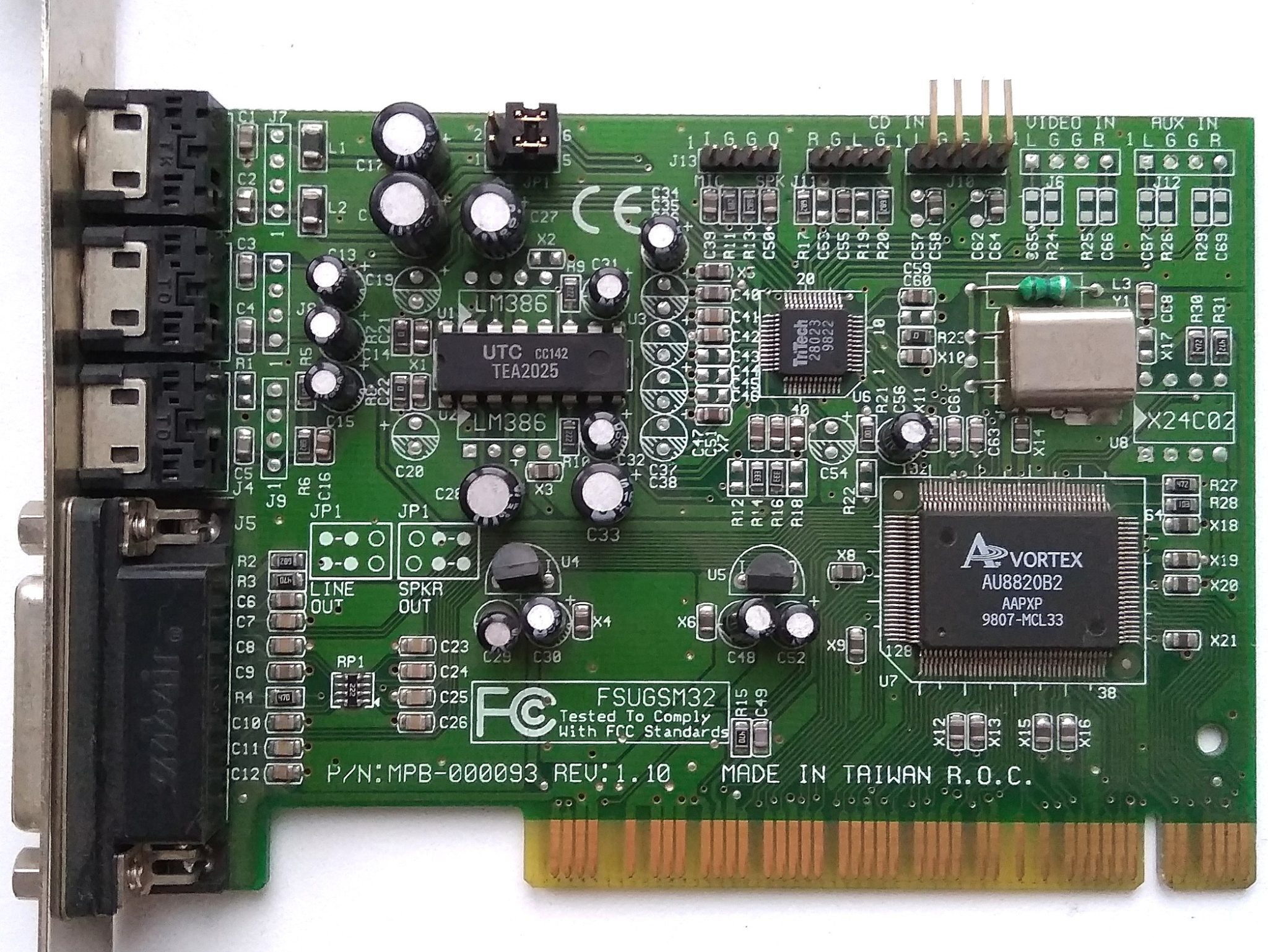 Чип Aureal AU8820 интересен собственной технологией A3D для создания «трехмерной» аудиообстановки. На тот момент отличался наилучшей реализацией 3D-звука среди мультимедийных звуковых чипов. Кроме того, это один из первых интегральных аудиоконтроллеров для шины PCI.